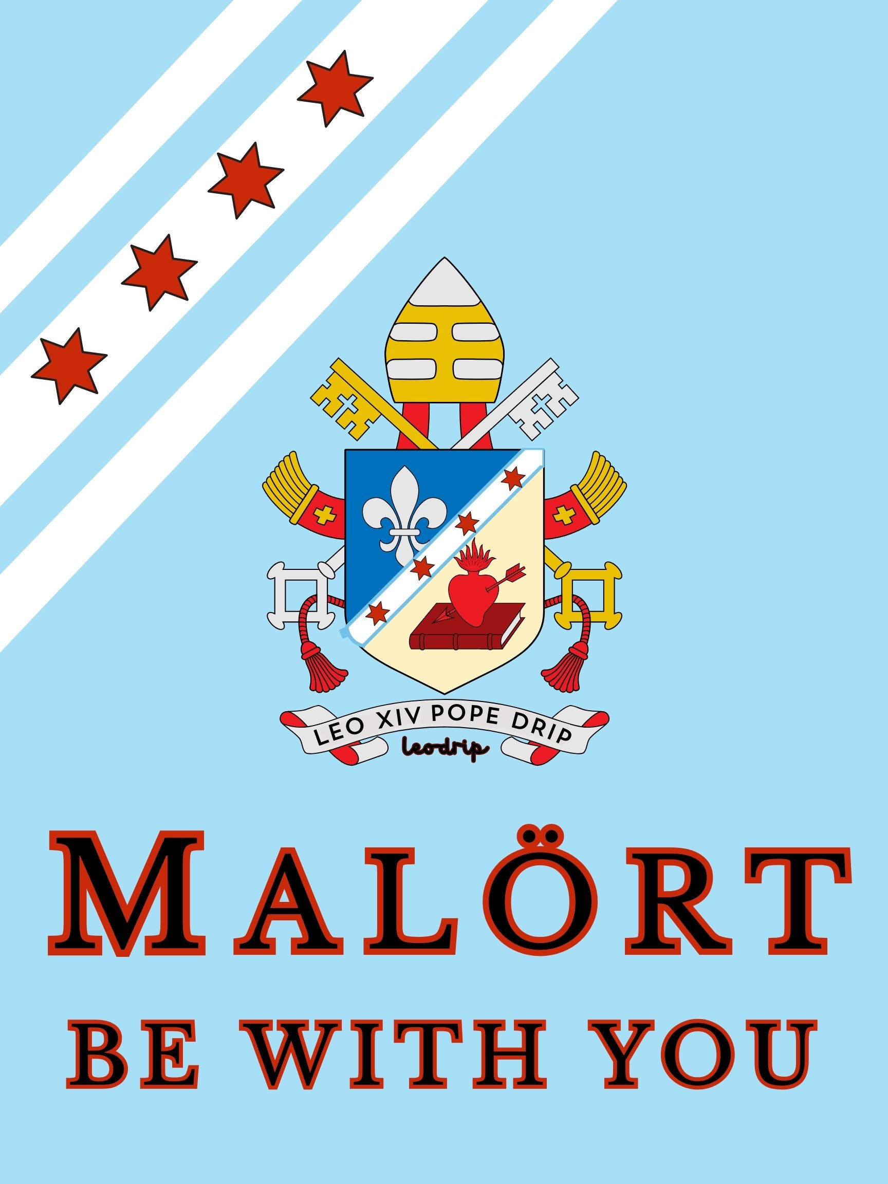 Celebrate Chicago culture in the most unexpected way with this bold and conversation-starting art print! This Chicago Flag Poster fuses the city’s most iconic symbols—Malört, the legendary bitter liqueur, Pope Leo XIV, the hometown pontiff, and the classic Chicago White Sox—all set against the timeless Chicago city flag.